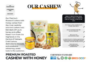 Hạt Điều Rang Mật Ong Cao Cấp GOLD CASHEW là lựa chọn hoàn hảo cho món khai vị và món ăn kèm trong các bữa ăn gia đình, gặp gỡ khách quý và cuộc vui bạn bè, hay đôi khi sẽ đơn giản là món ăn nhẹ dùng chung tinh tế bên ấm trà nóng mỗi ngày.